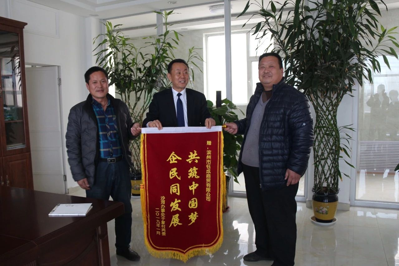 1月30日,于家村“兩委”將一面寫(xiě)著“企民同發(fā)展 共筑中國(guó)夢(mèng)”字樣的錦旗送到了濱州鈺城商貿(mào)有限公司,感謝企業(yè)一年來(lái)對(duì)于家村發(fā)展所做的貢獻(xiàn),這也是我辦“村企共建”的典型事例。通過(guò)村企共建,有效的推進(jìn)了企業(yè)和農(nóng)村和諧共處、相互促進(jìn)、共同提高。